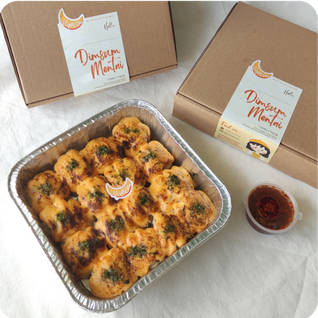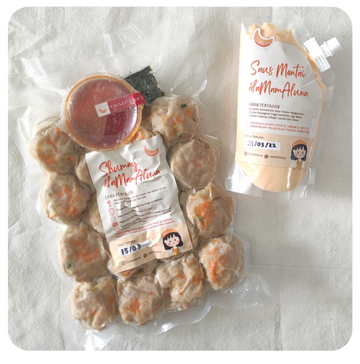 16 pcs dimsum ayam homemade + 150gr saus mentai khas álamamaluna + chili oil + aonori powderPemesanan H-1